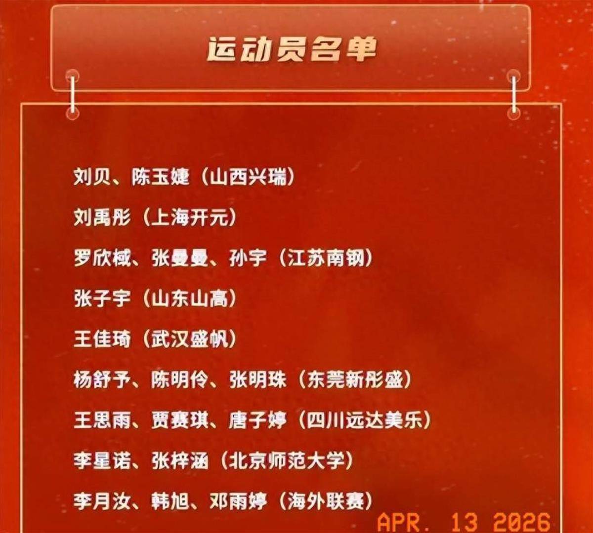 2026年4月13日,中国篮球协会正式对外公布了这则消息。这份集训名单涵盖了来自WCBA各俱乐部、大学校园以及海外联赛的共计19名优秀运动员。除了备受瞩目的韩旭、李月汝和张子宇这三位内线核心外,名单上还包括了王思雨、杨舒予、刘禹彤等一批深受球迷喜爱的球员,以及来自北京师范大学的李星诺、张梓涵等充满潜力的新生力量。