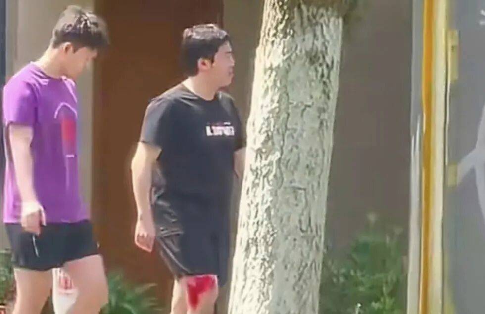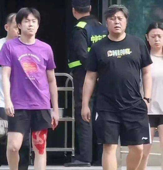 4月18日下午,成都国乒训练基地外,蹲守的球迷拍到了令人揪心的画面:梁靖崑在训练结束后左手扶着门框,缓慢地从训练馆挪出来,右腿几乎不敢落地,膝盖上那条鲜红色的肌效贴在黑色训练服上显得格外刺眼。他走得较慢,每一步都伴明显的跛行和因疼痛而微微龇牙的表情。