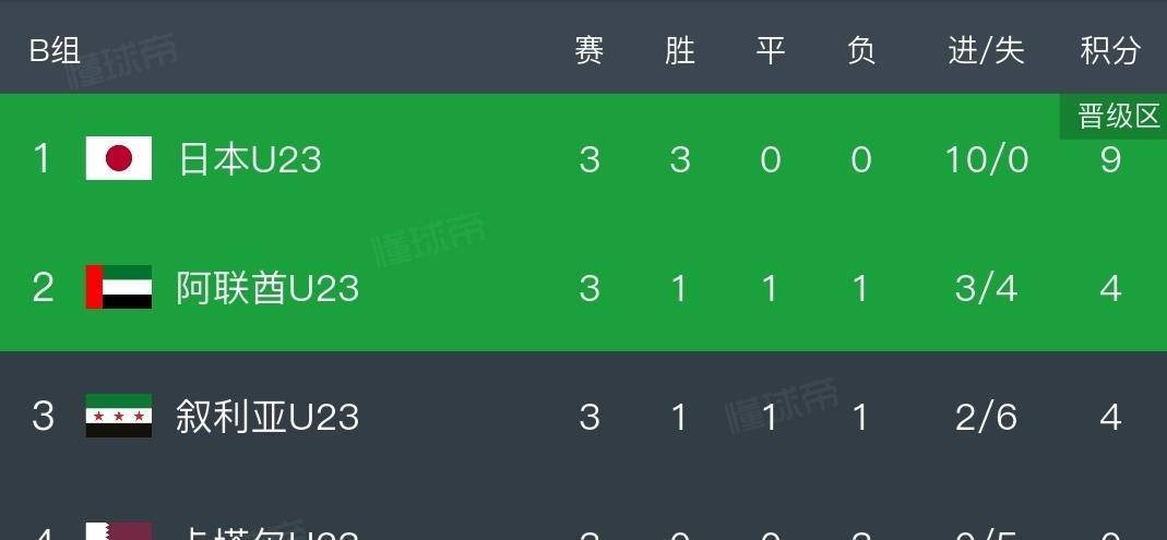 B组的第二个出线名额争夺充满戏剧性。 阿联酋与叙利亚1-1战平,双方同积4分,但阿联酋凭借净胜球优势惊险晋级。 叙利亚队后防线分钟的失误让阿里·阿尔梅马里轻松破门,尽管马穆德·奥马尔下半场扳平比分,但叙利亚最终未能打入第二球,成为本届赛事积分最高的出局队伍。