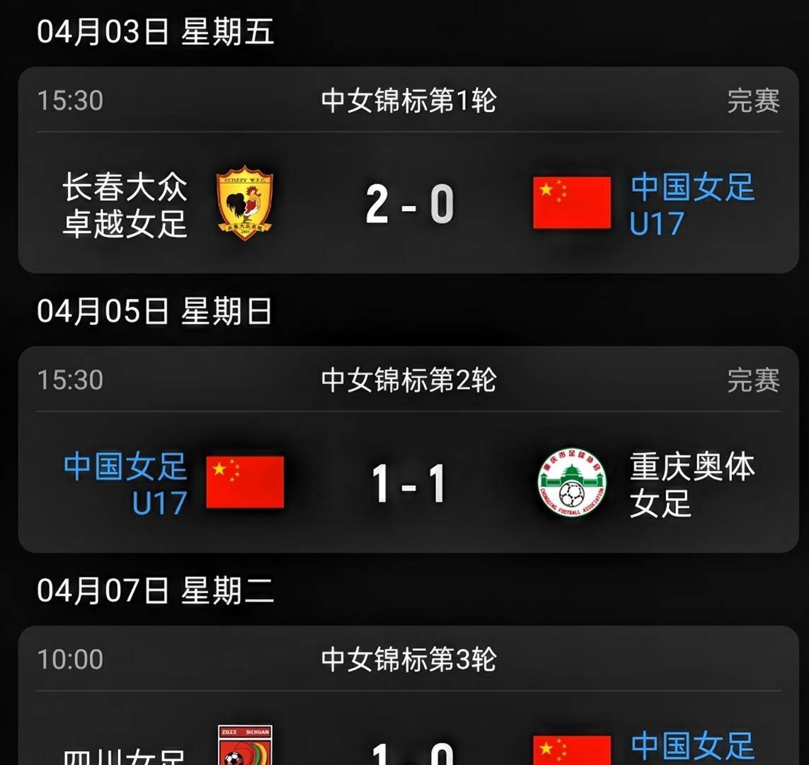 为了备战本次亚洲杯,中国足协特意安排这支2009年龄段的队伍参加了2026年全国女子足球锦标赛,以赛代练。 在锦标赛中,球队与多支女超成年队交手。 公开的比赛记录显示,她们在4月3日以0比2输给了长春大众卓越队,4月5日与重庆奥体战成1比1平,随后在4月6日以0比1不敌四川队。 虽然对手都是经验更丰富的成年职业队,比赛锻炼价值很高,但连续不胜的结果仍然引发了外界对球队实战状态的担忧。